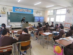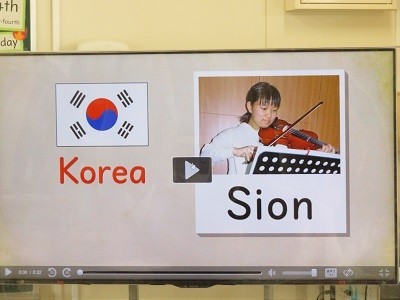 世界の友達が学校行事の思い出を語るのを聞いて、話している内容を聞き取っています。