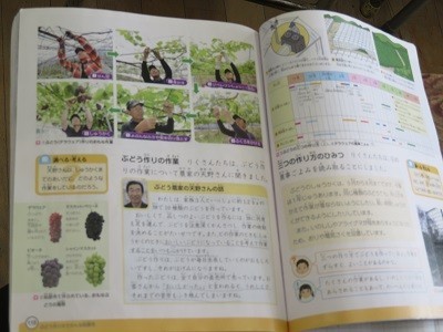 「ぶどうづくりの作業」について学習しています。ブドウづくりの手順も見ています。