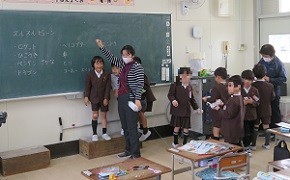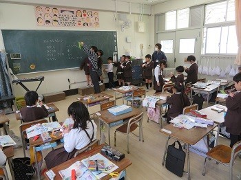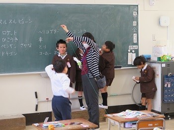 「スルスルビューン」。折り紙で作ったロケットやヘリコプター、たこなどの生き物を糸の上をすべらせて滑降させます。動きがあるのでおもしろいです。