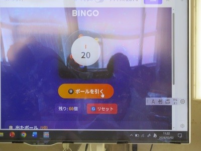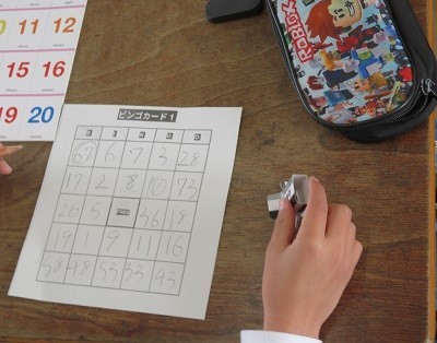 ビンゴを使った数字の言い方の学習です。英語で言われた数字をチエックしていっています。