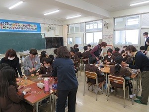 3/3 6年コサージュづくり 地域連携授業(6年2組)