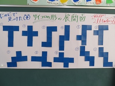 後ろの掲示板には、さいころの展開図が貼ってありました。
