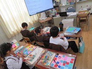 学校行事などのおもいでを入れたすごろくを仕上げています。