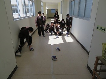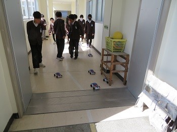 「電流のはたらきZ型ロードスター」が完成し、廊下を走らせています。