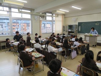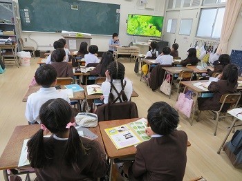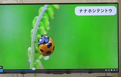 理科の最初の時間です。表紙裏の菜の花(アブラナ)、ナナホシテントウです。