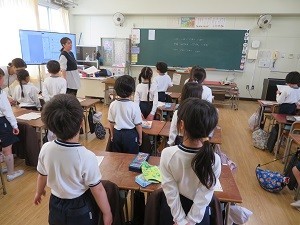 「下新庄小学校校歌」の練習をしています。他にもいろいろな歌を歌いました。