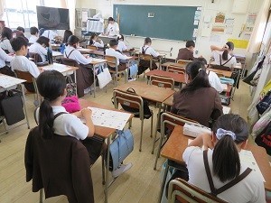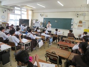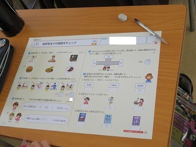 「前学年までの英語をチェック」のプリントで5年生の復習をしています。
