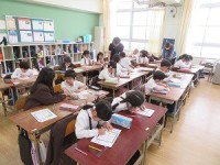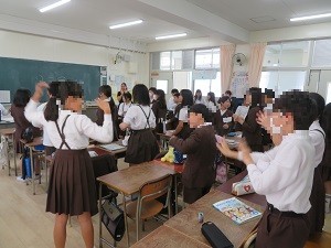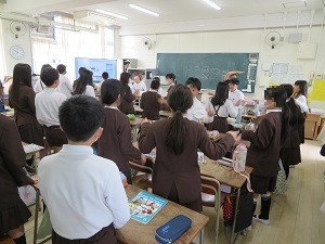 C-NETの先生との英語の授業です。曜日ごとのジェスチャー(振り)を入れて歌を歌っています。