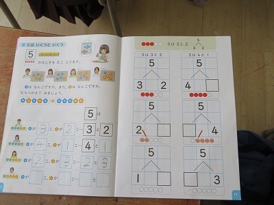 「5はいくつといくつ」。5になる数字のくみあわせを考えています。