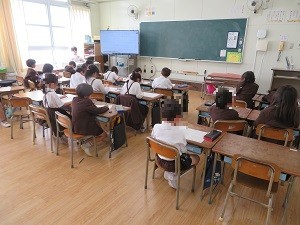 「学校たんけん」で1年生に教室を説明することばを考えています。