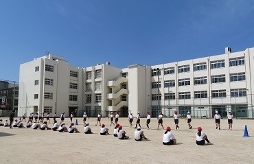 新体力テストの「20mシャトルラン」の測定です。晴れると運動場もだいぶ暑くなってきました。水筒での水分補給が欠かせません。