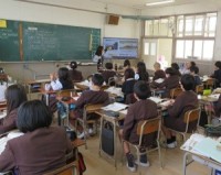 クラスごとに分かれて、2時間目と3時間目、大阪市環境局の方に「地球温暖化と気候変動」の授業をしていただきました。最初に地球温暖化と気候変動についてについて動画を見ながら説明していただきまし