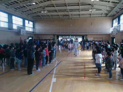 本日、1限目に「1年生を迎える会」がありました。1年生が元気よく「よろしくお願いします」と言うと、2年生〜6年生が、温かい拍手で、お迎えの気持ちを表しました。