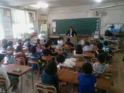 朝の会では、その日の予定の連絡や宿題等の点検を行っています。子どもたちが、1日の目標を持って活動できるように支援しています。写真は、2年生と3年生の朝の会の様子です。