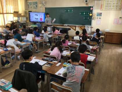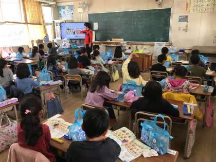 大型テレビを使い、視覚的にもわかりやすいよう工夫しながら進めています。