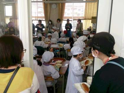 1年生の給食参観にはたくさんの保護者の方が参観に来ていただき、ありがとうございます。多くの保護者の方に教室に入っていただいています。スリッパ、上履き持参のご協力も本当にありがとうございます。2年生から6年生の参観は、午後1時50分からです。たくさんのご参観お待ちしています。