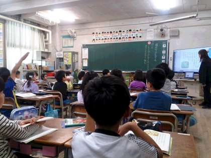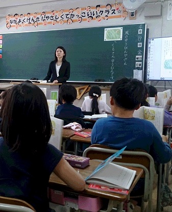 2年生は、学習参観で、国語「風のゆうびんやさん」の学習をしました。写真は、1、2組の学習の様子です。