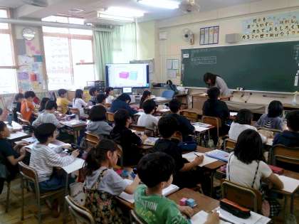 4年生は、学習参観で、算数「立方体や直方体の体積」の学習をしました。写真は、1、2組の学習の様子です。