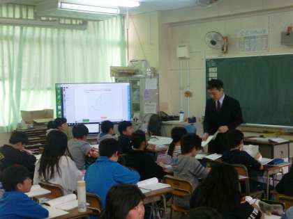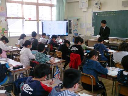 6年生は、学習参観で、算数「点対称な図形をかこう」の学習をしました。写真は、1、2組の学習の様子です。