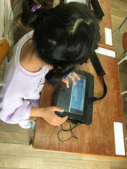 タブレットを使って電源の入れ方や閉じ方、ログインの仕方やカメラの使い方まで学びました。