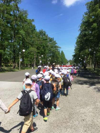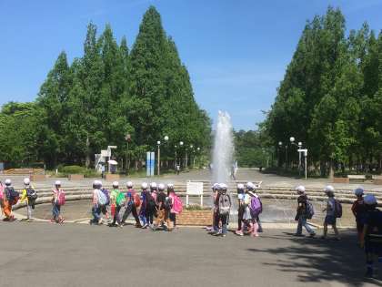 鶴見緑地公園に到着しました。子どもたちは、元気です。