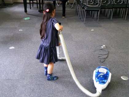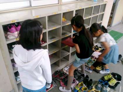 子どもたちは、各教室や廊下をお友だちと協力しながら、清掃活動に取り組んでいます。下駄箱や音楽室等の専科教室もしっかりと分担して頑張っています。