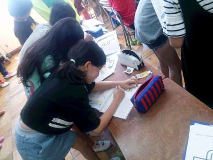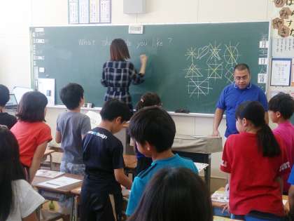5年生の外国語学習では、英語で友だち同士インタビューをしたり、相手から聞き取ったことを絵にして渡したり、工夫した活動を取り入れています。