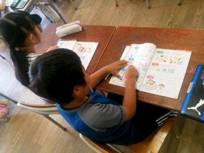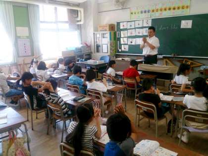 今日は、大阪市教育委員会より講師の先生に来ていただき、外国語学習の公開授業に取り組んでいます。写真は、3年生の学習の様子です。スピーチとヒヤリングをバランスよく取り入れて指導しています。