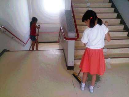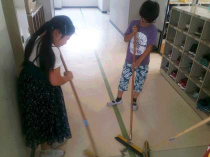 毎日、子どもたちが清掃活動に取り組んでいます。階段や下駄箱等、友だちと協力しながら頑張っています。