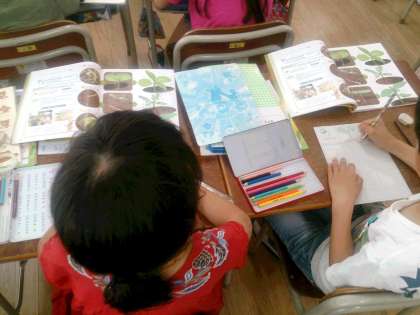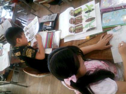 3年生は、理科で、植物の育ち方についての学習に取り組んでいます。丁寧に、育ち方をまとめている様子です。