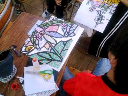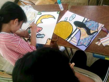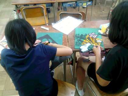 6年生が図工の時間に、「切り絵」の学習に取り組んでいます。細かな曲線や使う紙の色合いを考えてすばらしい作品を創作しています。