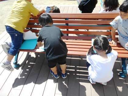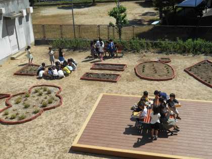 1年生が、学習園で草花の観察に取り組んでいます。よく草花を観察して、絵や文に表しています。