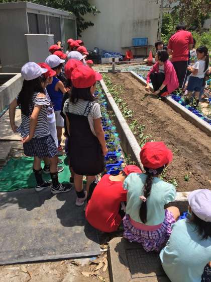 2年生が学習園にサツマイモを植えました。