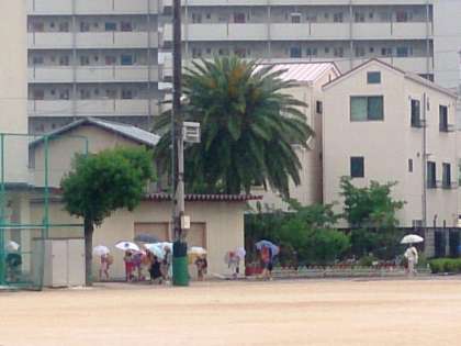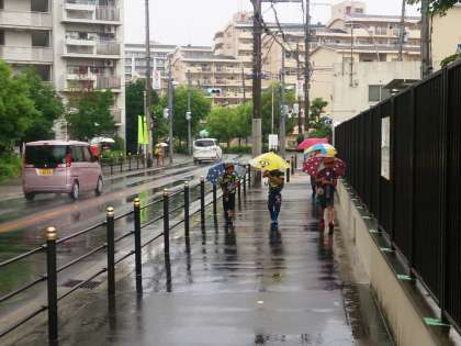 今朝、雨の中、子どもたちは登校しています。本日は、見守るデー・防犯の日で、防犯の避難訓練があります。