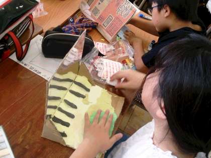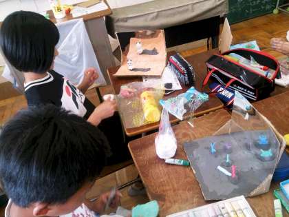 5年生の「ミラーボックス」は、鏡の特徴を生かして楽しい世界を表現する工作です。子どもたちの作品を見ると、少しずつ子どもたちの想像の世界が表現されてきた様に思います。