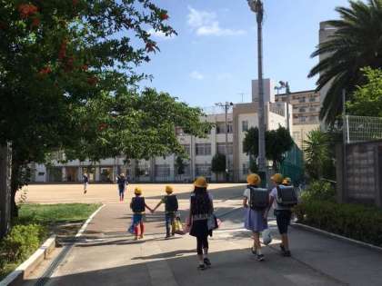 気持ちのいい天気の中、子ども達は元気にあいさつをして登校していました。