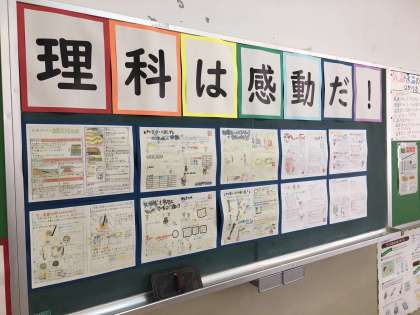 理科室は、子どもたちの頑張った成果がたくさん掲示されています。学校に来られた際はぜひご覧ください。
