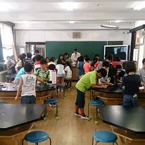 今日の15分休みに、「めざせ☆サイエンスキッズ!」を行いました。4年生〜6年生の子どもたちを対象に、理科の楽しさを授業以外でも味わってもらう取り組みです。ろ紙を使った模様づくりやコマづくり等、子どもたちは、楽しく活動していました。