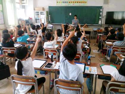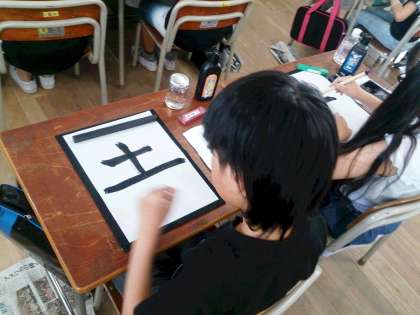 3年生の国語で、書写の学習に取り組んでいます。子どもたちは、とても集中して、「土」という漢字を丁寧に書いています。