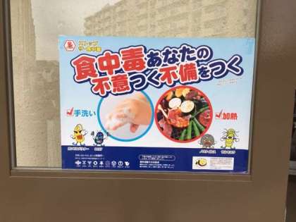 7月は食中毒予防月間とされ、学校でも給食室前にわかりやすくポスターを掲示して手洗いの励行を呼びかけています。