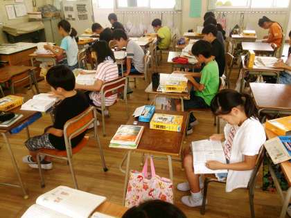 4年生の国語では、国語辞典を使って、子どもたちは、「ことわざ」を調べています。「ぼくは、花よりだんごかな。」というような子どものつぶやきも聞こえてきました。国語辞典の活用は、言語能力育成の大切な学習です。