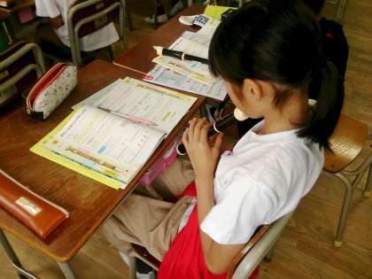 3年生の音楽では、リコーダーの演奏に取り組んでいます。階名を書き音色を確かめながら演奏しています。