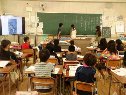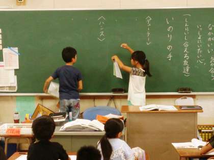 4年生の道徳で、「信頼される友だち」について学習しています。自分の考えを黒板に書き発表します。