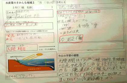 ワークシートやノートでは、子どもたちが自分たちで、工夫してまとめる様子がよくわかります。ワークシートやノートは、「思考の作戦基地」でもあります。