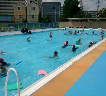 今日の1限目は、5年生の水泳学習です。1限目から気温が高く、子どもたちはとても気持ちよさそうです。