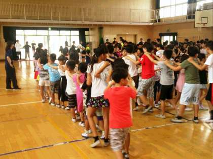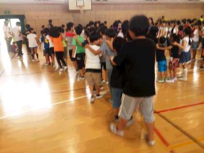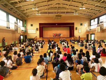 朝、児童集会がありました。今日は、集会委員会の子どもたちの司会・進行で、「ジャンケン機関車」を行いました。子どもたちは、とても楽しそうでした。