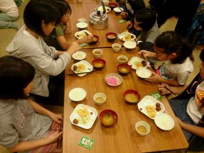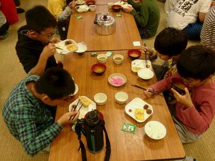 朝食の様子です。子どもたちは、美味しそうに食べています。