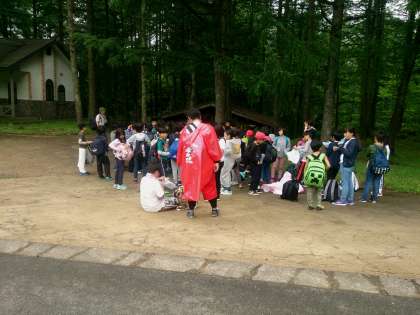 高丸山から全員無事下山しました。休憩した後、野外炊飯のカレーづくりです。