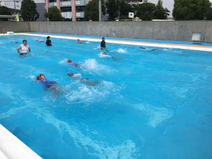 受付やプールカードの変更点にも慣れてきた様子です。プールを楽しんでいました。