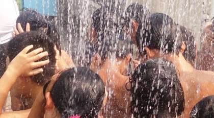 次のプログラムは、プールです。子どもたちは、しっかりシャワーを浴びて、準備体操後に、プールに入りました。とても気持ちよさそうです。